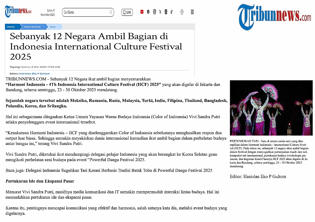 4th. IICF INDONESIA INTERNATIONAL CULTURE FESTIVAL (OCTOBER - 2025)